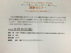 皆さん こんにちは! しらかわ工芸社の 中根義将(よしまさ)です。 しらかわ工芸社白川台本店となりの『またあした』では、 暮らしに役立つセミナーが開催されます。 今月はアンチエイジングアドバイザーの資…