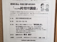 皆さん こんにちは! しらかわ工芸社の 中根義将(よしまさ)です。 白川台本店となりの『またあした』では 月に数回、暮らしに役立つセミナーが行われています。 今月末には、高齢者の方に大人…