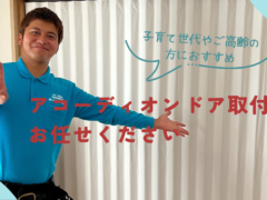 こんにちは。上石です。今日は、ロールスクリーンからアコーディオンドアの取付け工事の 現場を撮影した時の様子を、お知らせします。 こちらのお客様は、ロールスクリーンが汚れたり、 となりの部屋へ移動したい…