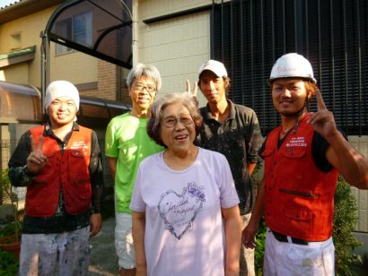 「中尾さま、完成おめでとうございます。色のバランスがよくて、素敵な家に生まれ変わりました。作業中、雨戸を壊してしまい新調させていただきましたが、中尾さまは暖かい笑顔でゆるしていただき、ありがとうございました。」