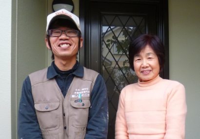 「もう、大感激です。何も言うことはありません。塗装の色は私の思う色になり大変喜んでおります。まるで新築みたいで嬉しくなりました。下本さん、職人のみなさん、本当にありがとうございました。」