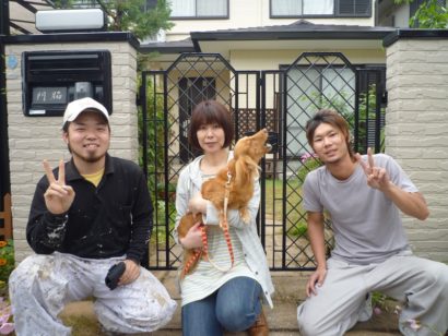 「粕谷親方、小林さん、薮﨑さんのチームワークのよさでスムーズにお仕事を進めて下さり、とても素敵な家によみがえりました。うれしくて毎日、我が家をながめています。よい方がたに来ていただき、しらかわさんにお願いして本当によかったと思います。ありがとうございました。お体に気をつけて、これからもがんばってください!」