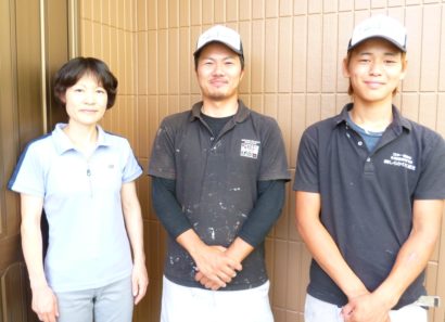 「初めての塗装だったので、期待と不安で始まりましたが終わってみると頼んで良かったと思います。皆さん話をよく聞いてくださり、ベテランの職人さんがおられる安心感もありました。技術的な事は分かりませんが、丁寧で無駄のないきれいな仕事だなと感心しました。台風の時も見に来ていただいた事を知り、心強く思いました。最後はゴミまで持ち帰っていただき、外回りが一新し感謝しています。有難うございました。」