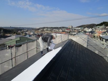 塗料の密着性を高めるため たっぷりと下塗り剤を塗っていきます!