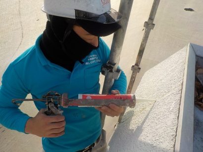 ひび割れ箇所は コーキング剤でキッチリ補修していきます!