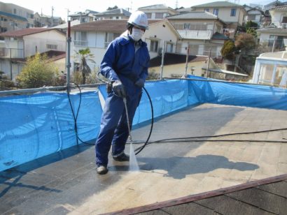 屋根も外壁と同様に高圧洗浄で汚れをきれいに落としていきます。