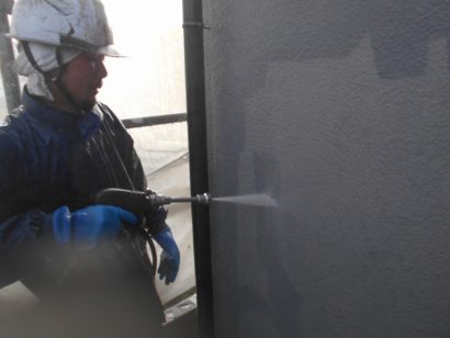 高圧洗浄で汚れをきれいに洗い流していきます。