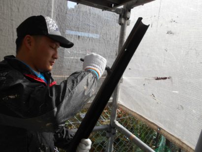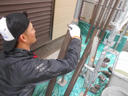 足場班の草部さんが塗装しています!
