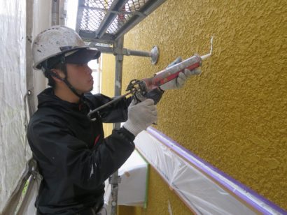 コーキング剤を注入しています。