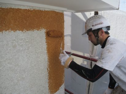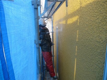 吹き付け塗装、上塗りを