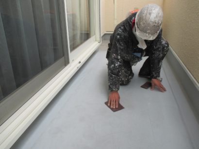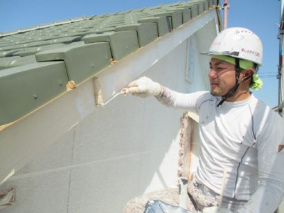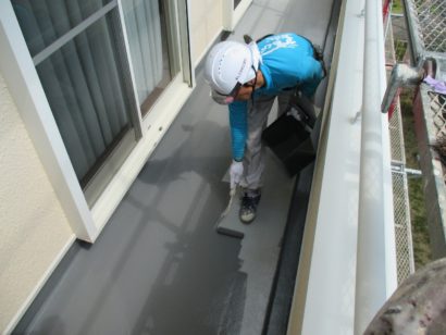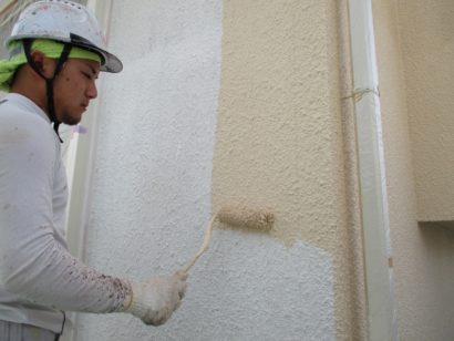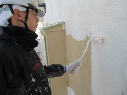 接着剤の役目がある下塗りは、密着性を高めるためしっかりと塗っていきます。
