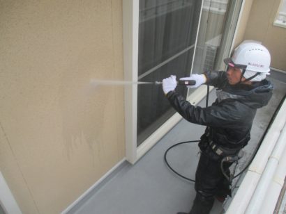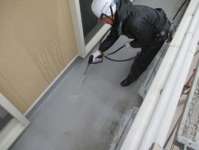 ベランダも隅から隅までしっかり高圧洗浄できれいにします。