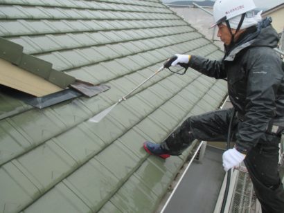 屋根も、外壁と同様にきれいに汚れを落としていきます。