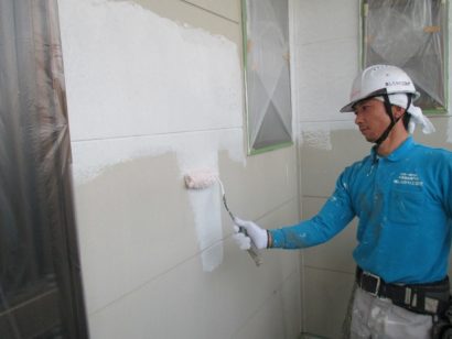 塗料の密着性を高めるため、しっかりと下塗り剤を塗っていきます。