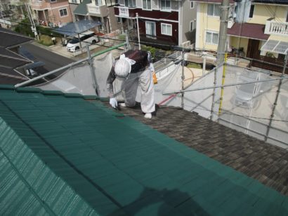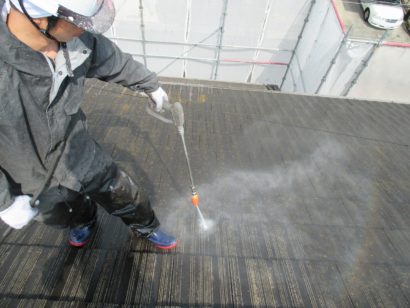 屋根も外壁と同様に、高圧洗浄で汚れをきれいに落としていきます。