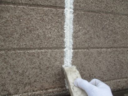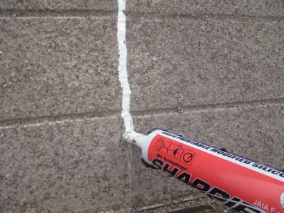 ひび割れした箇所にコーキング剤を