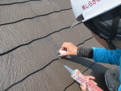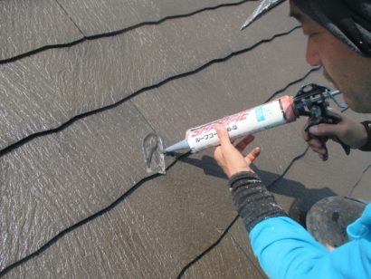 屋根専用コーキング剤を注入します。