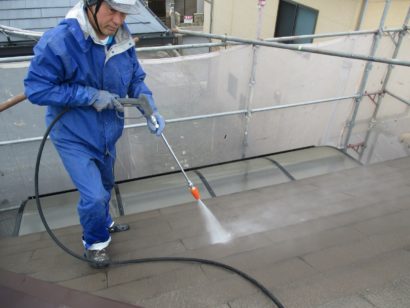 屋根も同様に高圧洗浄をします。