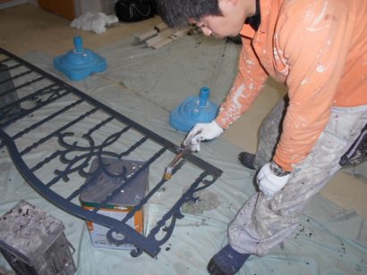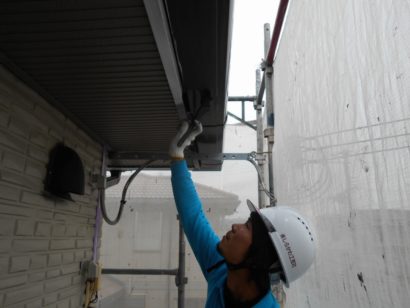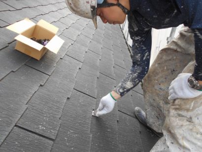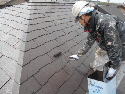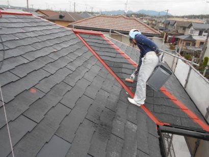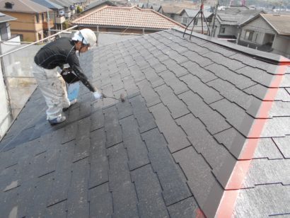 屋根の鉄部のさび止めが終わると、 下塗りをしていきます。 下塗りを丁寧に行い、塗料の密着をよくします。