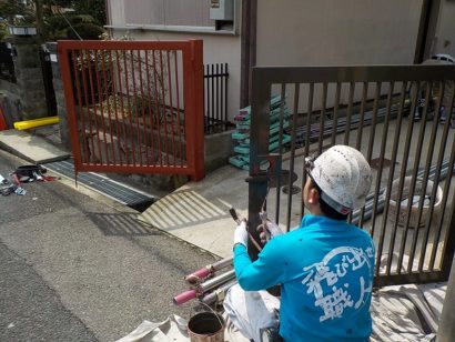 門扉はさび止めを塗り、その後2回塗ります。