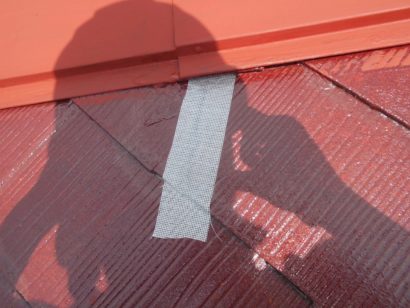 ひび割れ箇所に補強クロスを貼ります。