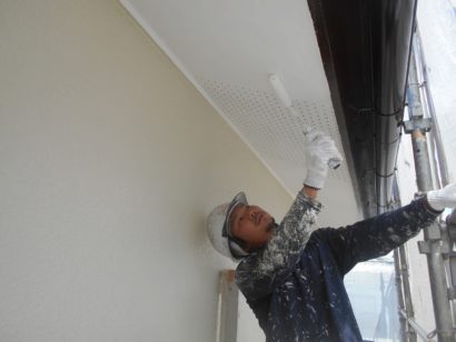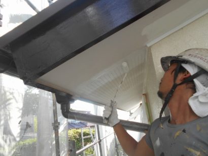 軒天井を塗装しています。