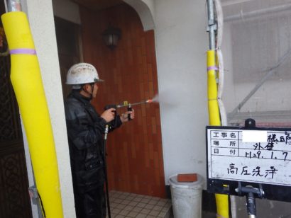 まずは高圧洗浄でお家の汚れをきれいに洗い流していきます。
