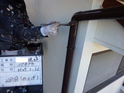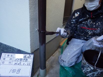 色あせていた雨といが、つやつやに生まれ変わりました。