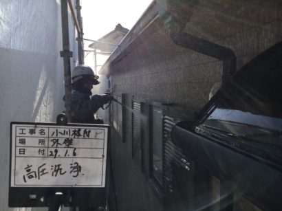 きれいに汚れやカビなどを落してから、外壁塗装を