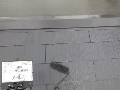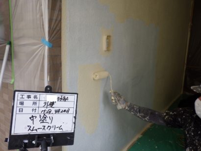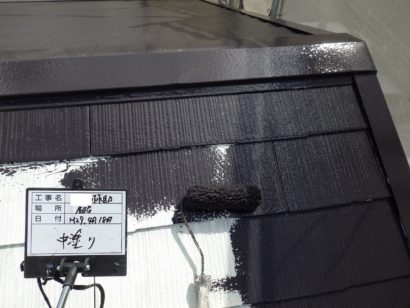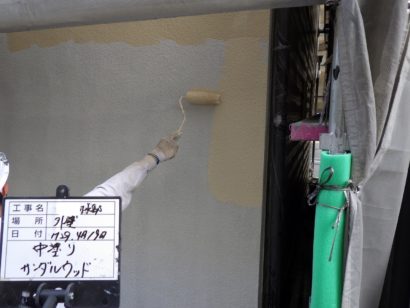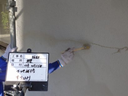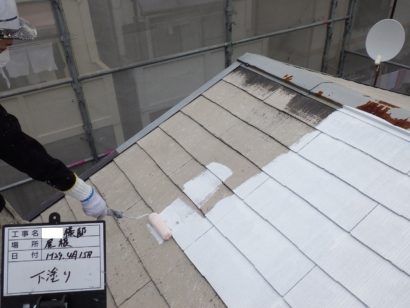 外壁と同様、下塗りをしっかりと塗っていきます。