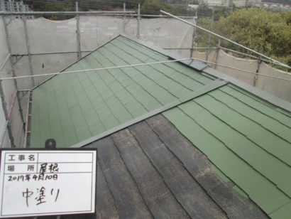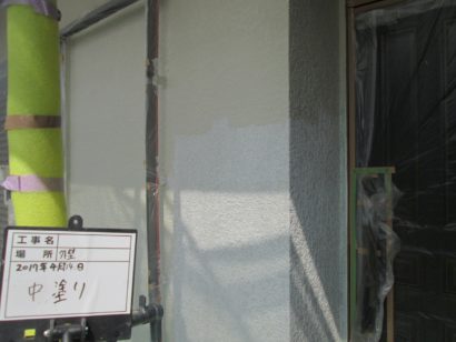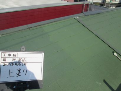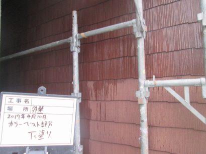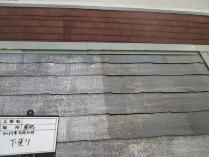 外壁と同様、下塗りをしっかりと塗っていきます。