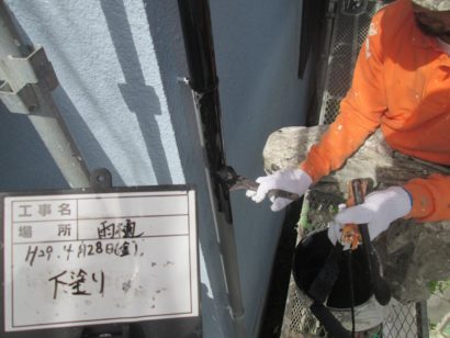 下塗りは次の塗料との接着剤となる役目があります。 しっかり、たっぷりと塗ります。