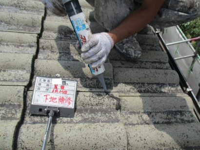 →屋根専用コーキング剤を注入→コーキング剤を均一