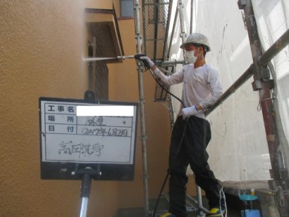 高圧洗浄なしで塗装していくと、塗装が膨れてはが
