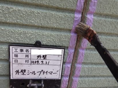 撤去後は、テープで養生をしてプライマーを