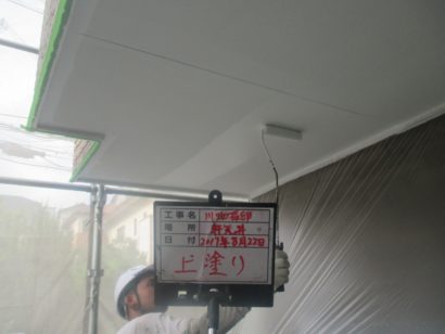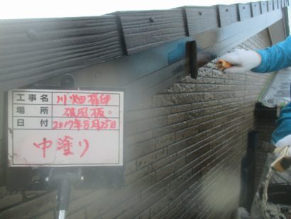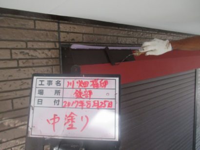 シャッターボックスは、さびどめを含む3回 塗りしています。 これで川畑様邸、全行程終わり、完成です!!