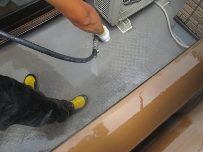 ベランダ塗装も はじめに高圧洗浄で汚れを落とします。