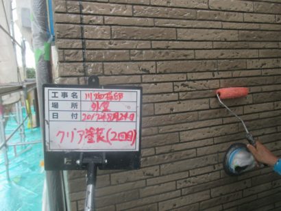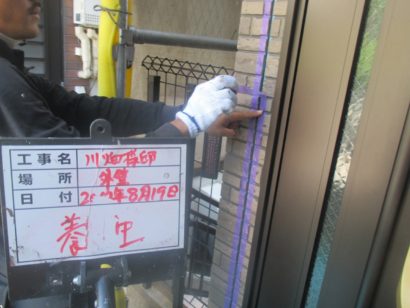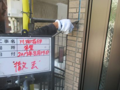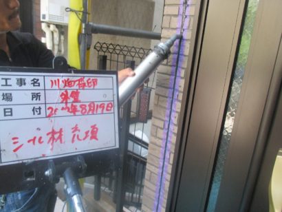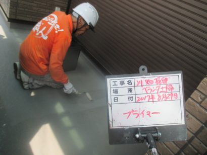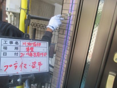 養生後は、プライマーと塗っていきます。 プライマーを塗ることで接着性を高めます。