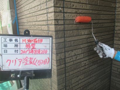 川畑様邸は、クリヤー塗装をしました。 透明な塗料でタイルの様な模様を残したまま 塗装することができます。
