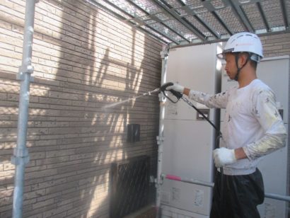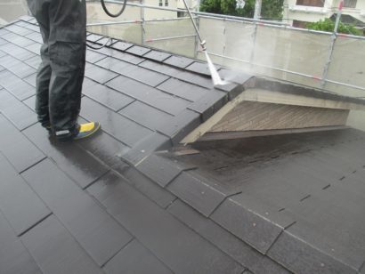 塗装をする前に高圧洗浄で汚れをきれい落とします。 大森親方が丁寧に水洗いしてくれています!