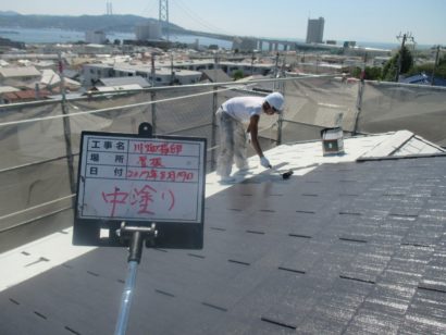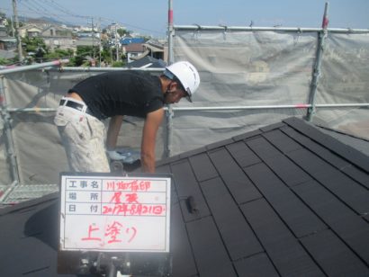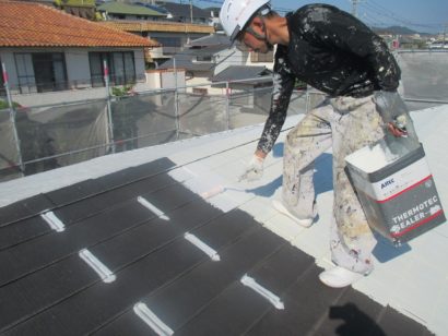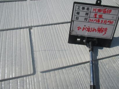 川畑様邸の屋根にひび割れを発見したので ひび割れ補修を行いました。