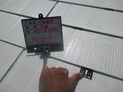 タスペーサー挿入後の写真です。 すべての屋根の隙間に挿入していきます。