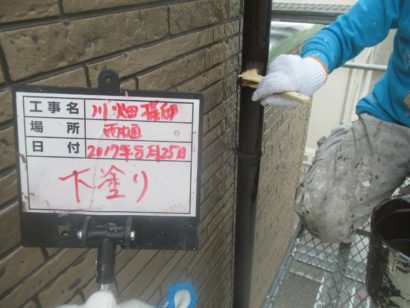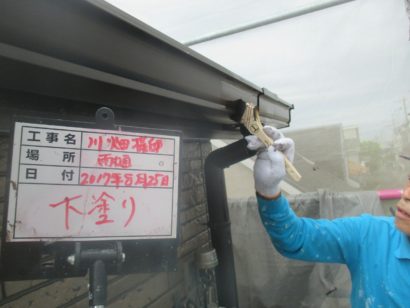 雨とい塗装です。 雨といは2回塗りを基本としています。