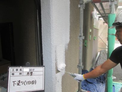 まずは次の塗料との接着剤となる役目がある下塗りを