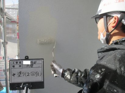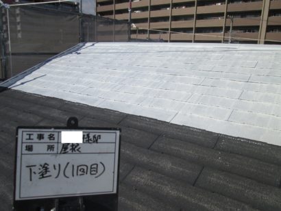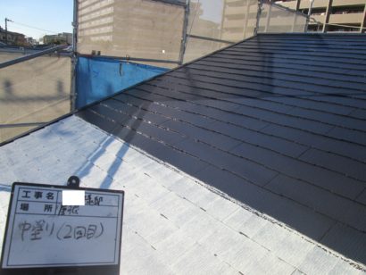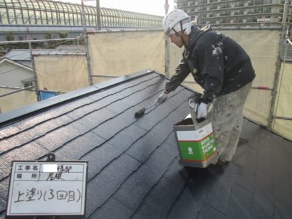 屋根塗装です。 屋根も外壁同様に基本3回塗りします。