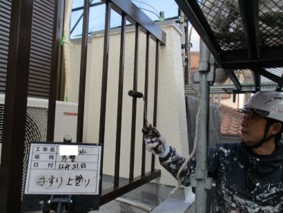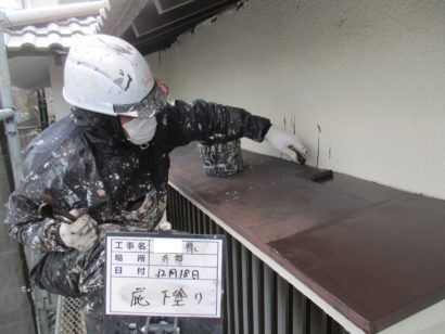 外壁は基本3回塗りで、まずは1回目の下塗りです。
