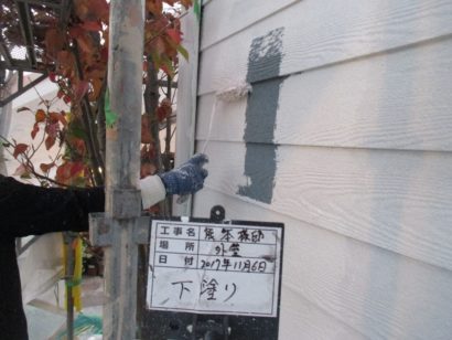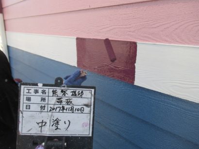 どこにでも見かける家(色)ではなく、独自のmycolorを出したかったので、色にはこだわりました。発注の時点で下本さんがしっかり相談に乗ってくださり、塗装に入ってからも鉄さんが私の不安に答えてアドバイスや提案をしてくださり、塗料の配合を考えて作ってくださいました。とてもうれしかったです。おまけに大森さんに3色のコーディネートを「熊本さんカラーです。」と言ってもらって大満足でした。私のどうしようもない、次々と湧き出てくるワガママ虫にも進んで一緒に遊んでもらえてとても楽しい改修工事でした。20代の若いかっこいい元気ハツラツの若者が真剣にフットワーク軽く仕事に向き合っておられる姿勢に関心しました。また、後半にたくさんの応援団が駆けつけて一気に塗り上げてくださったのには感動しました。みなさん大変お世話になり、ありがとうございました。