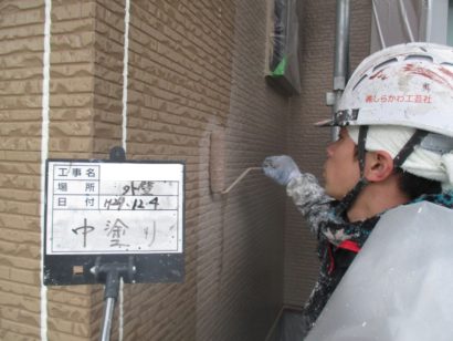 工事中は人のよさそうな職人さんが毎日来てくださり、対応も気持ちもいい感じで、ご近所の方も挨拶してくれると褒めていました。お仕事も丁寧にしてくださって、仕上がりもとてもきれいです。壁の塗装以外にもお庭にあったものの処分やポストもピカピカに塗ってくださり、色々とお気遣いいただきました。毎日の作業の報告も丁寧にしてもらいました。ありがとうございました。濃紺の屋根の色と白い壁がとても気に入っています。玉井さん、鄭さんお世話になりました!!