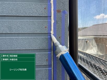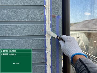 養生テープを剥がすと、目地シーリングの打ち替え完了です!これで大切なお家が長持ちしますね!