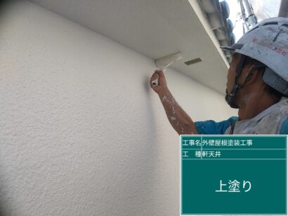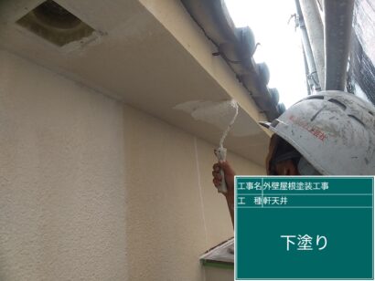 軒天井の塗装です。まずは下塗りから。